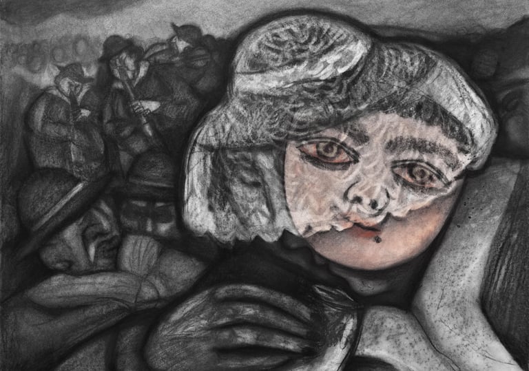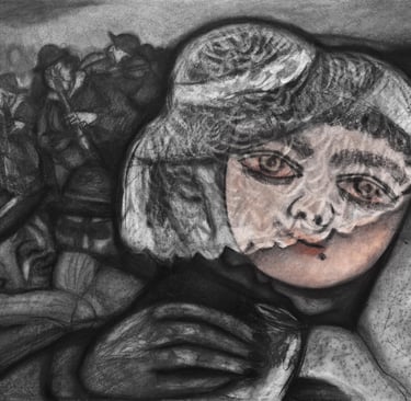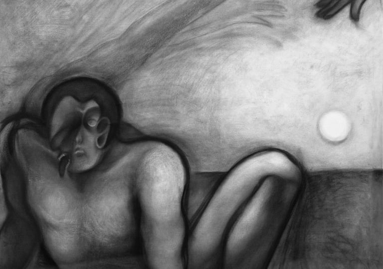 Máscara I/ Charcoal on Canvas/ 30 x 31.5/ 2025