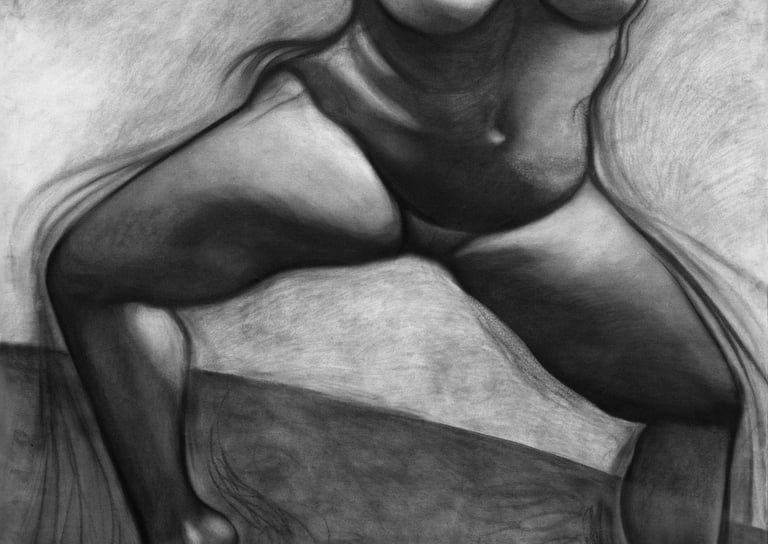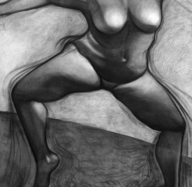 The compositions Danza I and Danza II are complemented by a series of four charcoal drawings on canvas that seek to represent the connection of movement in dance with the spiritual search and the moment of trance in which the spiritual connection with oneself (Soul/God) is created.